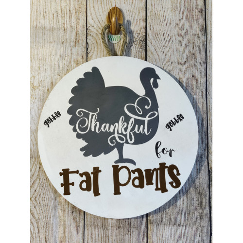 Funny Thanksgiving door hanger, thankful for my fat pants!